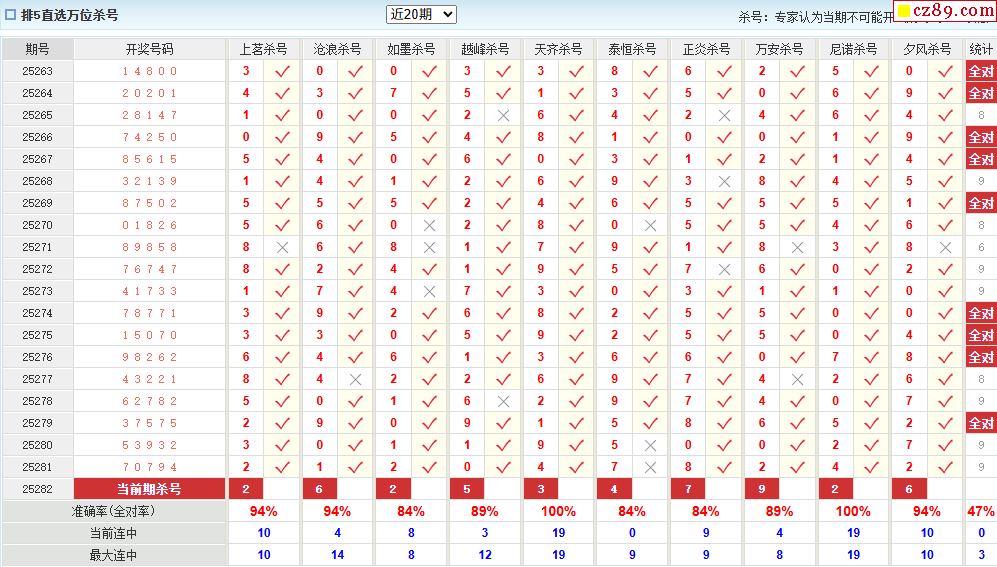 > 25年282期澳客专家体彩P5杀号定码推荐